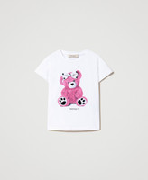 Choisissez ce t-shirt regular pour fille en jersey de coton stretch avec imprimé photographique d’un ours et nœud à pois appliqué. Il présente un col rond, des manches courtes à revers cousu et le logo. Parfait pour compléter le style de votre petite ou comme idée cadeau.