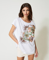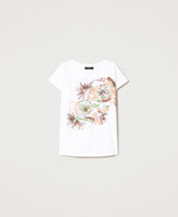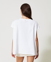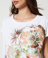 T-shirt oversize de la collection Actitude en coton avec broderie florale en fil et sequins, large col rond et manches courtes.