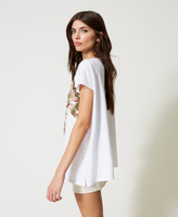 Une coupe oversize et une spectaculaire broderie florale en fil et sequins pour le t-shirt en coton avec large col et manches courtes. Il suffit de le porter pour donner une attitude au style.