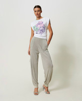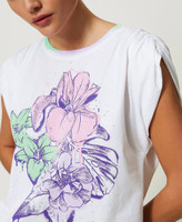 T-shirt édition limitée de la collection Actitude en jersey de coton avec imprimé floral placé, col rond, manches froncées et coupe oversize.