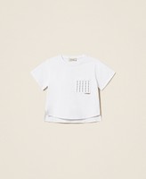 T-shirt pour fille en jersey de coton stretch avec poche plaquée rehaussée de cabochons ton sur ton. Il présente une encolure ras-du-cou, des manches courtes, des fentes latérales, un bas asymétrique plus long dans le dos et une coupe regular.