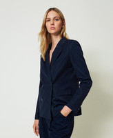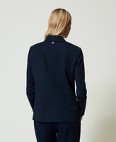 - 80 % polyester 15 % viscose 4 % élasthanne 1 % polyester métallisé. Doublure : 100 % polyester