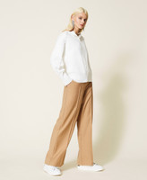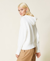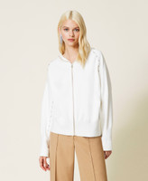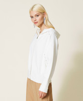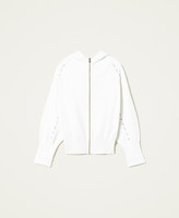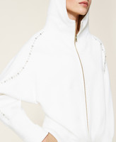 Blouson en maille avec capuche, manches raglan ornées de perles et de strass, fermeture éclair.