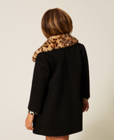 Manteau pour fille en drap avec col cousu en fausse fourrure à motif animalier. Il présente une fermeture avec boutons siglés Oval T, des poches passepoilées sur les côtés, une doublure et une coupe droite.
