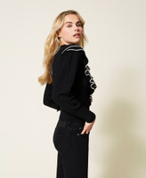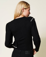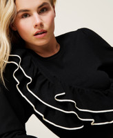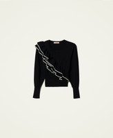 Pull en viscose stretch avec volants en biais et finition contrastée, col rond, manches longues, coupe regular.