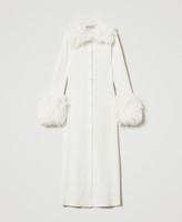 Robe-cardigan longue en laine mélangée et fausse fourrure