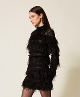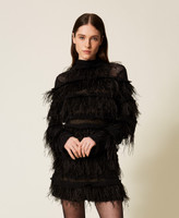 - 100 % polyester. Matière 2 : 35 % polyamide 35 % acrylique 15 % laine 15 % alpaga. Matière 3 : 100 % polyester. Matière 4 : 100 % plumes autruche