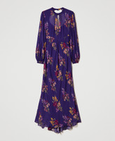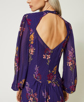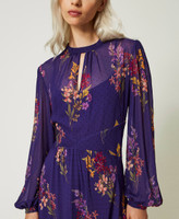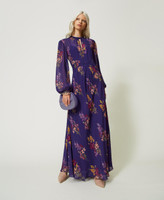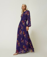 robe longue en crêpe georgette de viscose italien, avec un imprimé exclusif Twinset qui unit les pois all-over et un motif bouquet évoquant la tradition des jardins botaniques anglais. Elle présente une coupe fluide, un col rond avec fronce et ouverture en V, une fermeture boutonnée et un ajour dans le dos, des manches longues froncées aux emmanchures, avec poignet et bouton revêtu, une incrustation à la taille et un fond de robe en crêpe de Chine doté de bretelles réglables. Avec des talons hauts pour une cérémonie ou des cow boots pour une tenue remarquable.