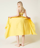 Une précieuse éponge italienne pour la serviette de plage avec logo ton sur ton qui forme un motif circulaire et franges courtes sur les côtés. Avec un bikini de la collection, elle sera l’association parfaite pour des vacances de rêve.