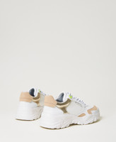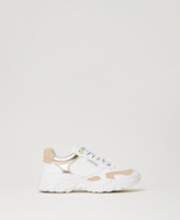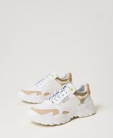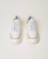 Baskets compensées modèle running dans un mélange de matières, avec détails fluo, lacets et semelle crantée en caoutchouc.