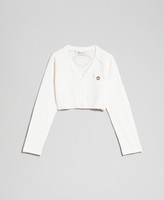 Boléro en viscose stretch rehaussé de boutons assortis et d'un nœud rond en maille avec étiquette.