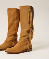 Bottes en cuir de veau avec franges latérales en cuir velours, bout arrondi et semelle en cuir.