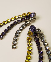 Des franges de chaînes multicolores strassées pour les boucles d’oreilles pendantes avec fermoir à vis. Des points de lumière pour illuminer votre tenue.