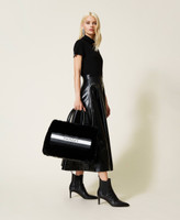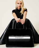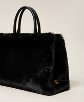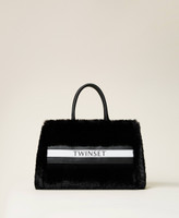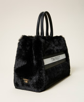 Grand cabas en tissu à fibre longue, avec doubles anses, logo imprimé, fermeture aimantée.
