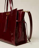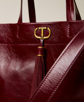 Le cabas made in Italy en cuir de veau italien pleine fleur, glacé puis manipulé pour apporter brillance et souplesse à la surface, séduit grâce à une texture raffinée et brillante. Il présente une double anse pour un porté épaule, une bandoulière amovible, des rubans latéraux et le logo Oval T couleur laiton vieilli avec pompon en cuir velours doux assorti. Son volume spacieux en fera un indispensable allié pour vos journées les plus chargées.