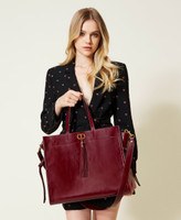 Cabas en cuir avec pompon