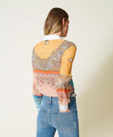 Apportez une touche de caractère à vos tenues grâce au style de la chemise en léger crépon italien, avec imprimé patchwork bandana, un motif exclusif signé Twinset. Elle présente des détails en coton uni contrasté, une boutonnière, un top nuisette en crêpe de Chine. L’association parfaite ? Avec un denim et des sandales plates.