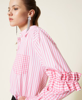 Chemise de la collection Actitude en popeline à rayures bâton avec insertions en Vichy, poche de poitrine et poignets contrastés.