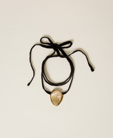 Collier choker avec pendentif en métal effet martelé, cordon en velours et logo gravé.