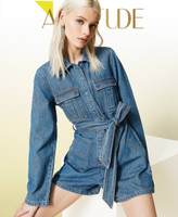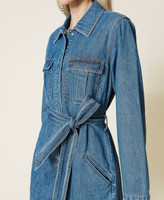 Pour un stylisme facile et actuel. Combi-short en denim léger, ouverte sur le devant avec boutonnière sous-patte, manches longues droites, poches avec rabat et pli creux, short avec poches. À porter avec ou sans la ceinture coordonnée.