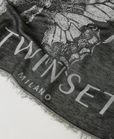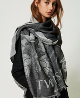 Écharpe en mélange de modal et viscose au toucher chaud, avec finition jacquard, motif floral, logo et bords effilochés.