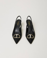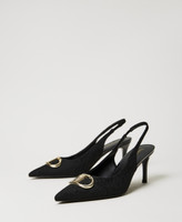 Escarpins modèles slingbacks en dentelle avec Oval T sur le bout pointu, talon stiletto et semelle en tunit.