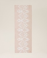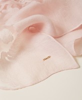 Étole en dentelle incrustée avec transparences et étiquette siglée.