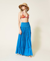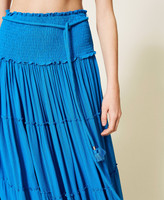 Jupe longue double usage (elle peut également se porter comme robe) en crépon de viscose point smocks avec ceinture.