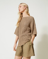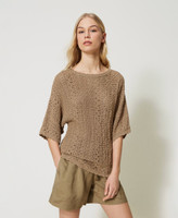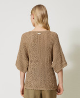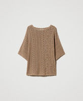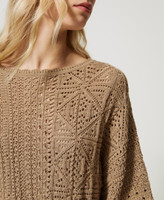 Maxi pull en coton avec mélange de points ajourés à motif géométrique, bords festonnés et coupe fluide.