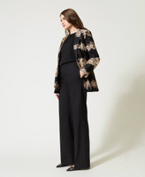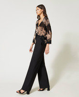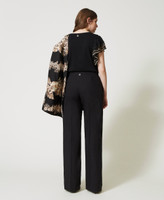 Le pantalon ample en popeline de coton stretch, avec taille droite regular, fermeture éclair sur le côté, poches italiennes, pli marqué et étiquette siglée Oval T à l’arrière, arbore un charme versatile. Il sera parfait avec des talons hauts ou des sandales plates.