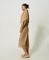 Pantalon cropped en organza brodé