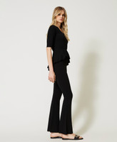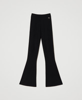 Seamless stretch viscose knit trousers, flared, with elastic at the waist and Oval T logo plate with rhinestones in front.