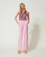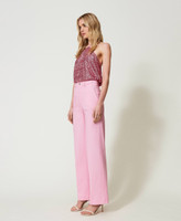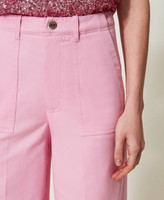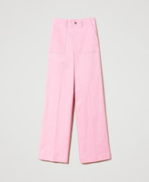 Pantalon palazzo en gabardine stretch avec taille haute, fermeture éclair et bouton-pression, poches sur les côtés.