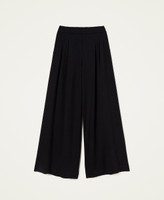 Pantalon palazzo en molleton de viscose stretch avec élastique à la taille, pinces, poches sur les côtés.