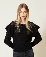 Pull en mélange de laine et alpaga avec ajours et mélange de points, volants ajourés sur les manches et coupe regular.