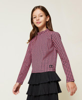Pull col roulé en jersey de coton stretch, avec imprimé pied-de-poule et logo Oval T dans le bas.