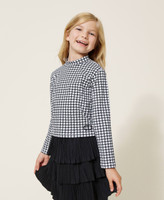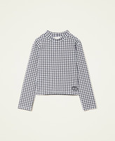 Pull col roulé en jersey de coton stretch, avec imprimé pied-de-poule et logo Oval T dans le bas.