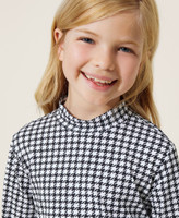 Une pièce essentielle dans le dressing d’une fille à porter dans un look superposé, sous une robe sans manches, un pull ou un blouson. Le pull col roulé en jersey de coton stretch présente un imprimé pied-de-poule, des manches longues et le logo Oval T dans le bas. Il se coordonne facilement dans une myriade de looks.