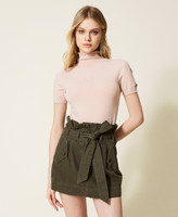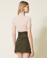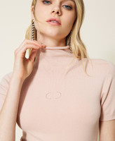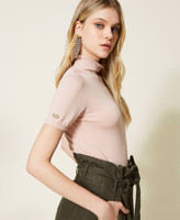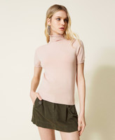 Pull col montant en viscose mélangée stretch sans coutures, avec manches courtes, Oval T ajouré et coupe ajustée.