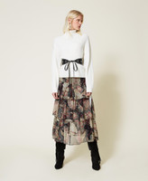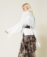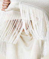Pull col roulé en laine mélangée côtelée avec manches et empiècement dans le dos rehaussés de franges brillantes, fentes latérales.