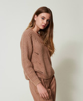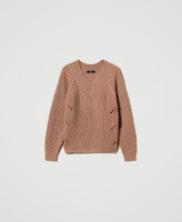 Pull de la collection Actitude avec finition côtelée et torsades. Il présente une encolure en V, des manches longues et une coupe fluide.