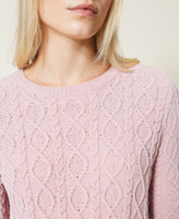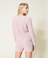 Ensemble en chenille lurex composé d’un pull torsadé regular et d’un short avec cordon coulissant à la taille.