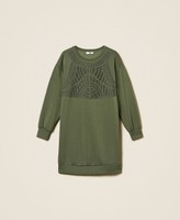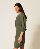 Robe courte en scuba de viscose mélangée avec application assortie réalisée au crochet sur le devant. Elle présente un col rond, des manches longues avec épaules légèrement tombantes, un cœur siglé en métal dans le dos et une coupe fluide.