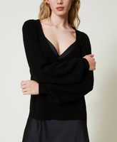 Robe longue nuisette en satin, dotée de bretelles spaghetti et associée à un pull en viscose mélangée stretch assortie, avec coupe fluide, large encolure et manches longues.
