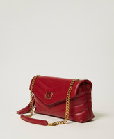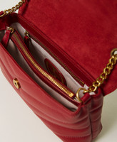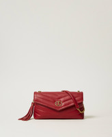 Sac à bandoulière « Dreamy » made in Italy en cuir de veau lisse italien pleine fleur avec traitement déperlant et anti-éraflures, construction modèle baguette, finition matelassée en losanges et logo Oval T en métal. Il présente une fermeture à rabat et aimant, une bandoulière en chaîne coulissante avec épaulette en cuir pour un double porté, un pompon assorti rehaussé de détails en métal et une doublure.