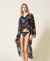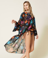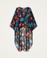 Caftan asymétrique en crêpe georgette imprimé, avec fermeture en goutte et bouton, amples manches longues.