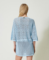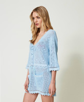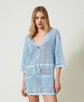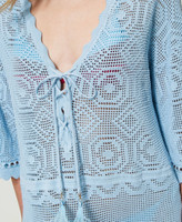Caftan en maille de coton ajourée avec motif géométrique, encolure en V et cordon de serrage, bords festonnés.
