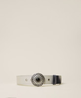 Imprimé cosmos pour la ceinture taille haute revêtue de satin, avec boucle bijou et œillets de réglage. À associer à une robe, un pull ou un blouson selon vos goûts.
