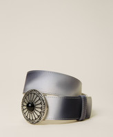 Ceinture de la collection Actitude revêtue de satin imprimé, avec taille haute et boucle bijou.