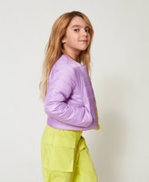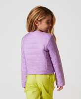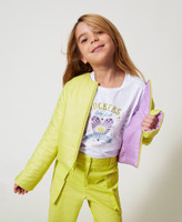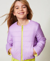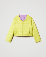 Doudoune rembourrée pour fille en tissu matelassé, réversible et bicolore, avec encolure ras-du-cou, fermeture éclair, poches insérées sur les côtés et coupe droite.